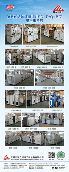無錫市聯眾控濕節能設備有限公司成立于2004年2月,是一家長期致力于把空氣吸附分離技術應用于空氣處理設備的科技型中外合作 企業,主要研發生產轉輪除濕機組、熱泵除濕機組、空氣與空氣熱 能交換回收機組、蒸發冷卻空調機組、有機廢氣凈化處理機組等非 標空氣處理設備。隨著生產規模的不斷壯大和產業化的精細分工, 聯眾公司與2011年10月在江蘇省宜興市萬石鎮工業園茶亭路8號, 一期投資5000萬元,置地25畝、建標準工業廠房10000平方米和辦 公樓3000平方米,重新注冊成立江蘇聯眾聯勝節能設備有限公司。 企業領導層決定確立江蘇聯眾聯勝公司以研發生產蒸發冷卻空調機 組、有機廢氣凈化處理機組等大型節能環??諝馓幚碓O備為主;而無錫聯眾控濕公司則在無錫繼續以研發生產轉輪除濕機組、熱泵除濕機組、空氣與空氣熱交器為主。在國內暖通空調工程領域,聯眾控濕公司研發各類轉輪除濕機的技術能力、生產各類轉輪除濕機的 裝備制造工藝水平處于本行業前沿。